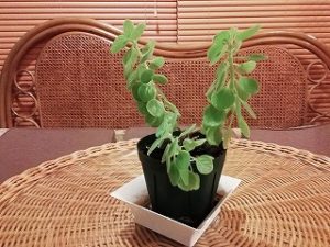 特徴としては、多肉種(らしい)、葉っぱが丸い、葉っぱに産毛がある、触るとフワフワしてる、少し擦るとミント系の香りがする。です。