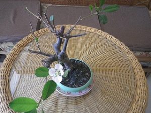 今年の1月末に買って、ブログにも上げていたボケの盆栽。